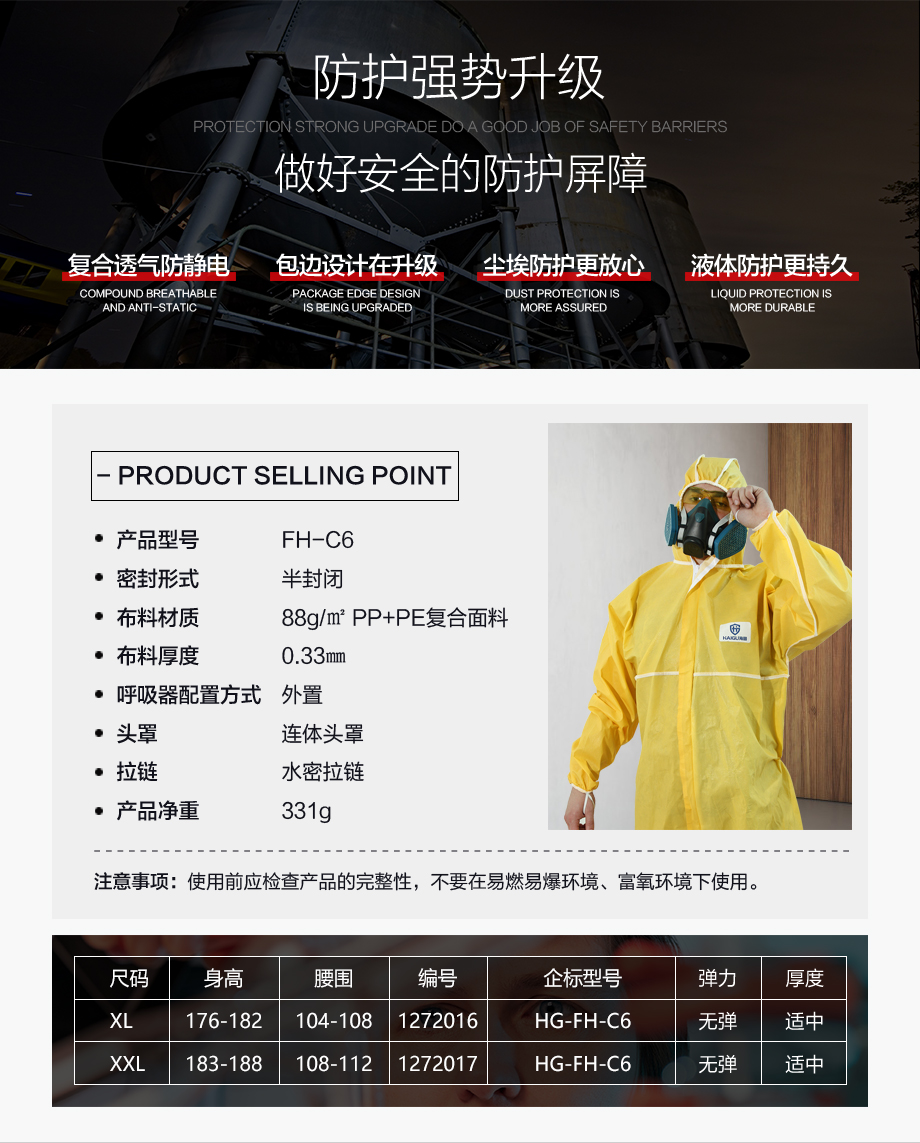 海固FH-C6連體防護(hù)服 油污 塵埃 靜電防護(hù)服