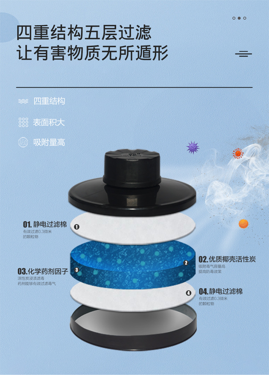 產(chǎn)品規(guī)格:寶藍(lán)灰硅膠/ABS濾毒罐