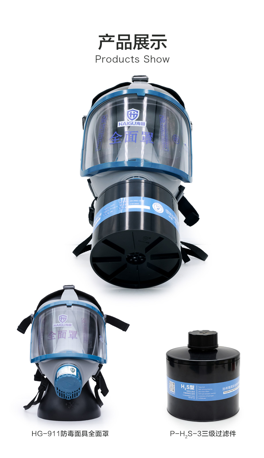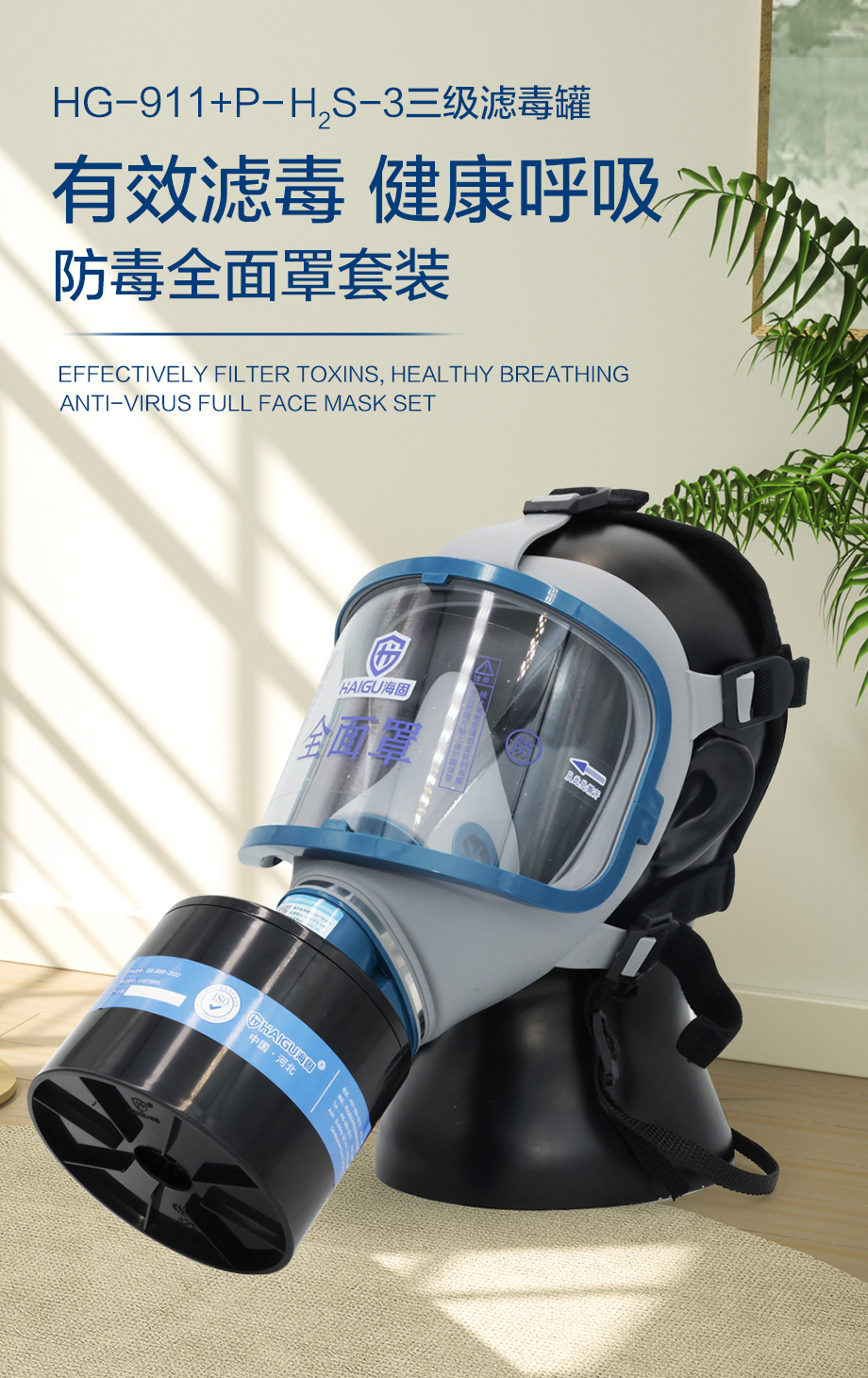 海固911全面罩+HG-ABS/P-H2S-3濾毒罐 硫化氫活性炭防毒面具