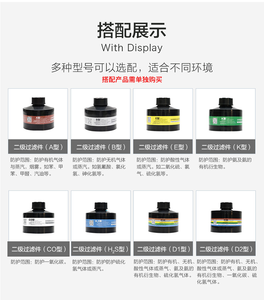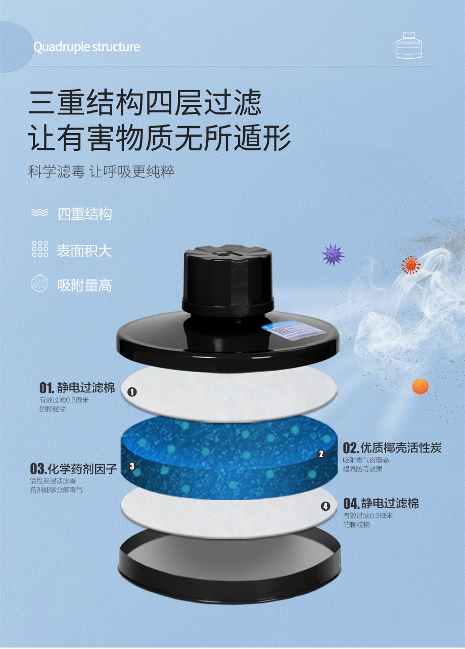 產(chǎn)品規(guī)格:寶藍(lán)灰硅膠/ABS濾毒罐