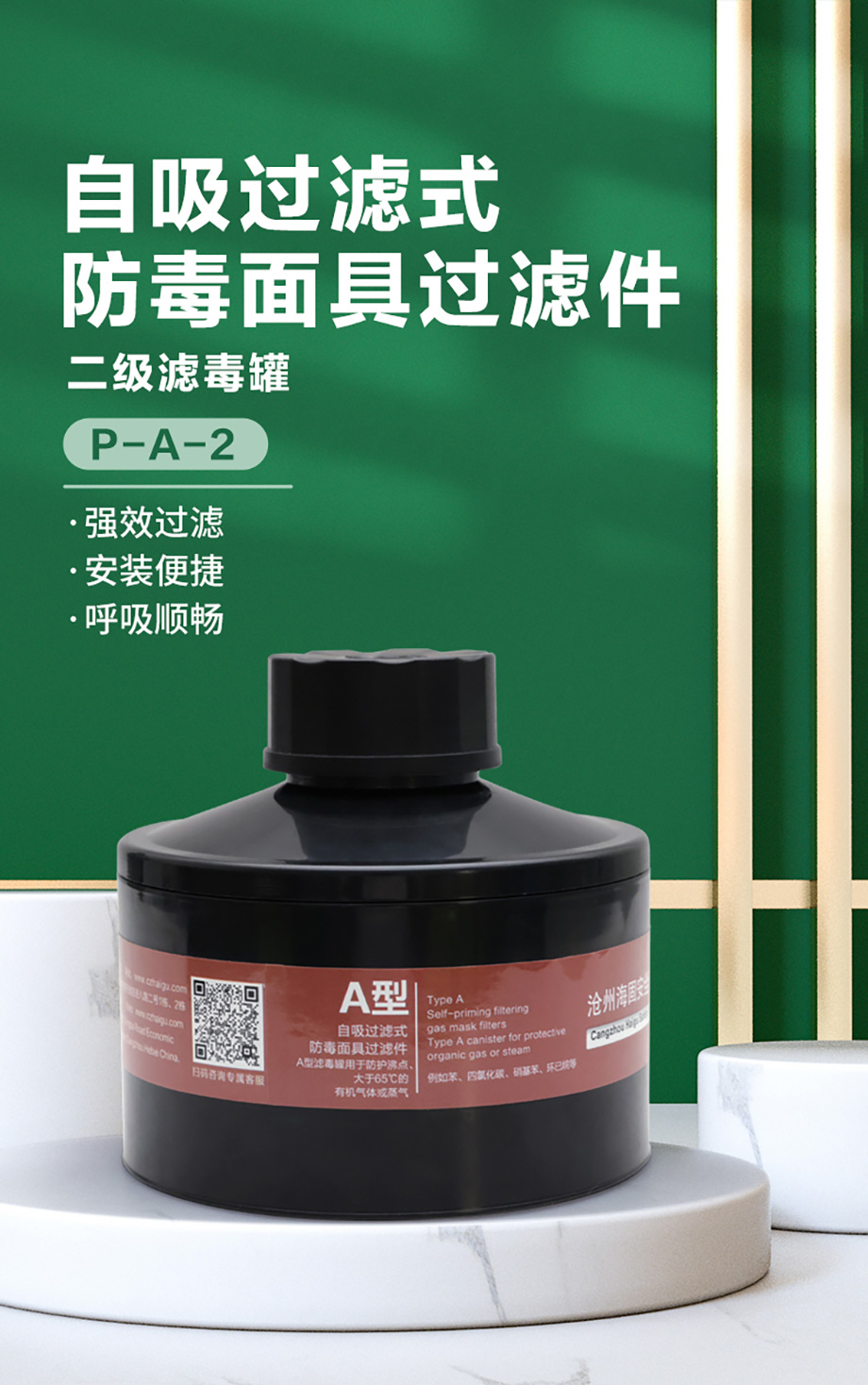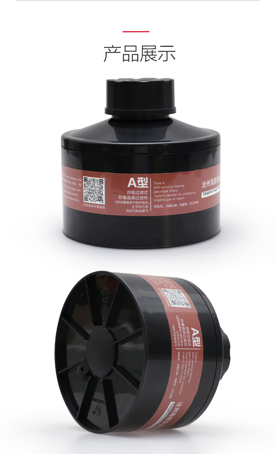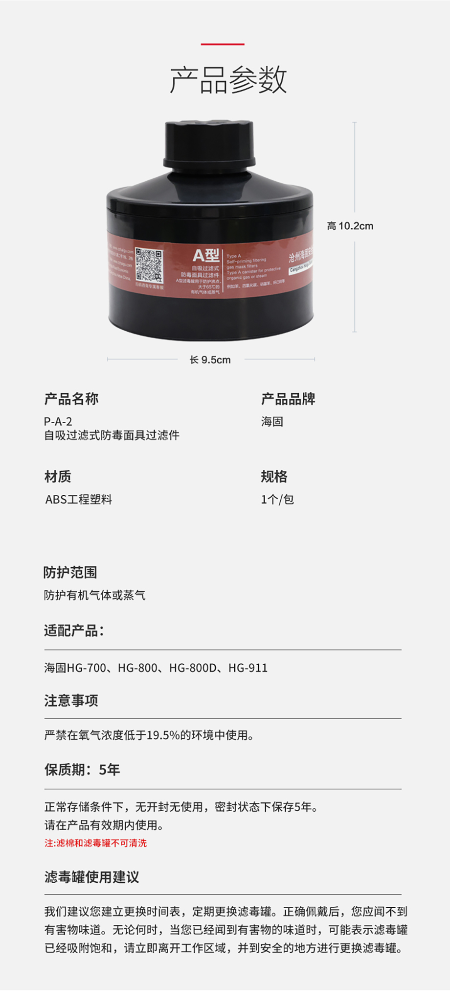 海固P-A-2濾毒罐 苯、四氯化碳、硝基苯、環(huán)己烷等有機(jī)氣體防護(hù)