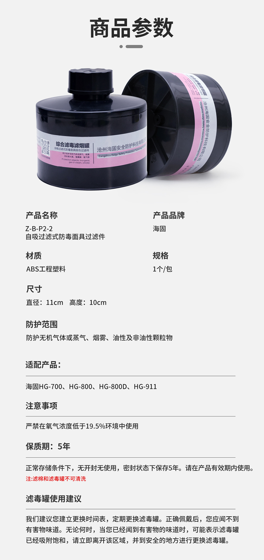 海固Z-B-P2-2/P3-2綜合濾毒濾煙罐 防護無機氣體或蒸氣、煙霧