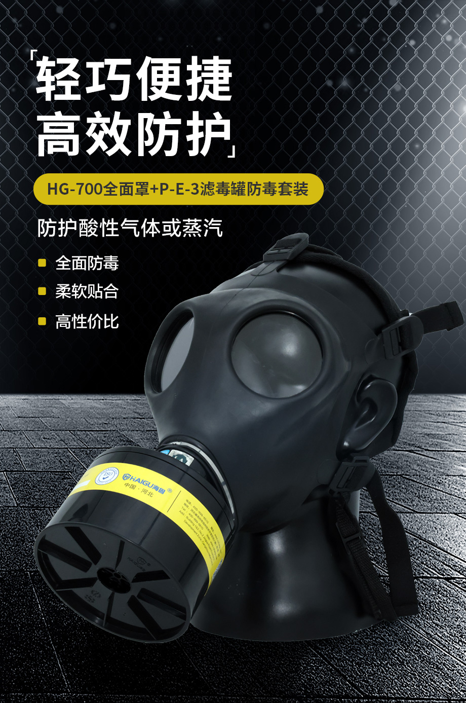 海固700全面罩+P-E-3濾毒罐 酸性氣體專用
