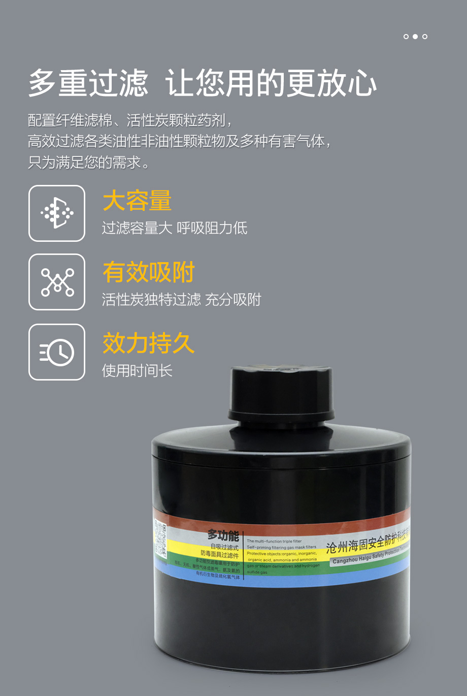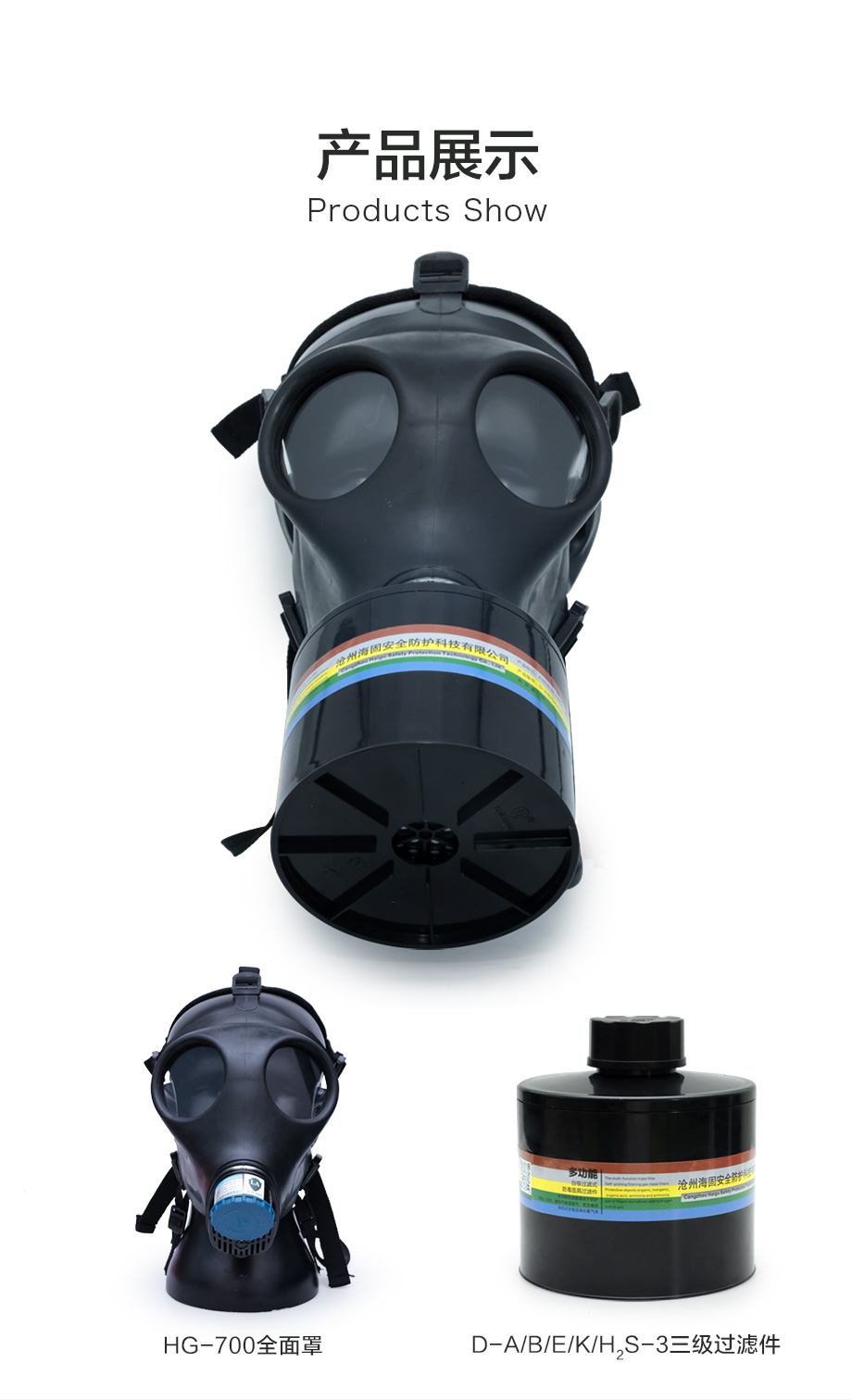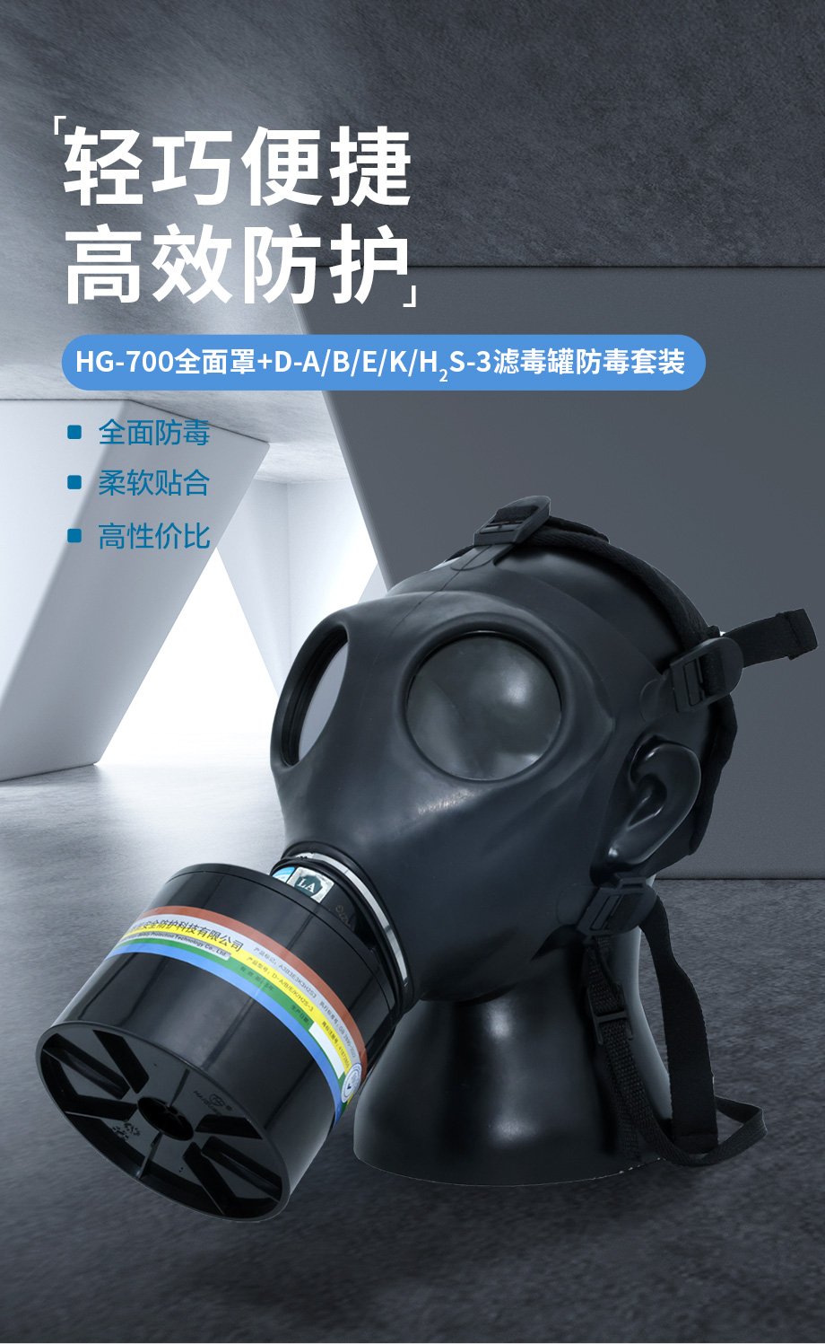 海固700全面罩+D-A/B/E/K/H2S-3濾毒罐 綜合防毒氣