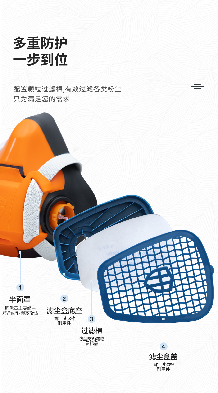 防塵防顆粒物套裝 海固602半面罩+三卡口濾塵盒+濾棉