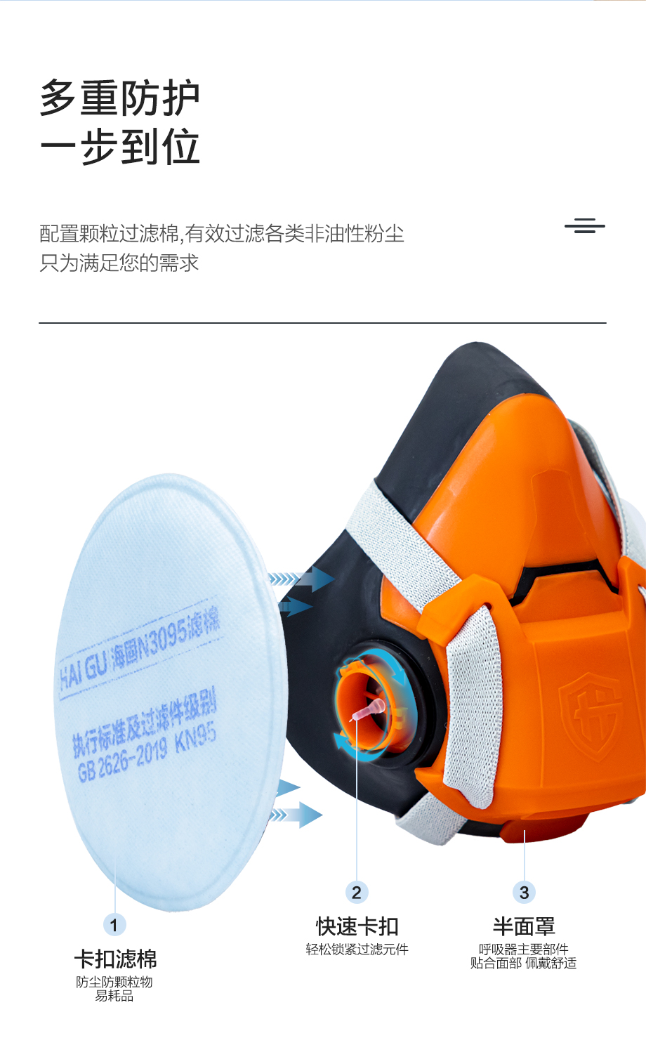 海固HG-602半面罩+KN卡扣濾棉 防護非油性顆粒物濾棉