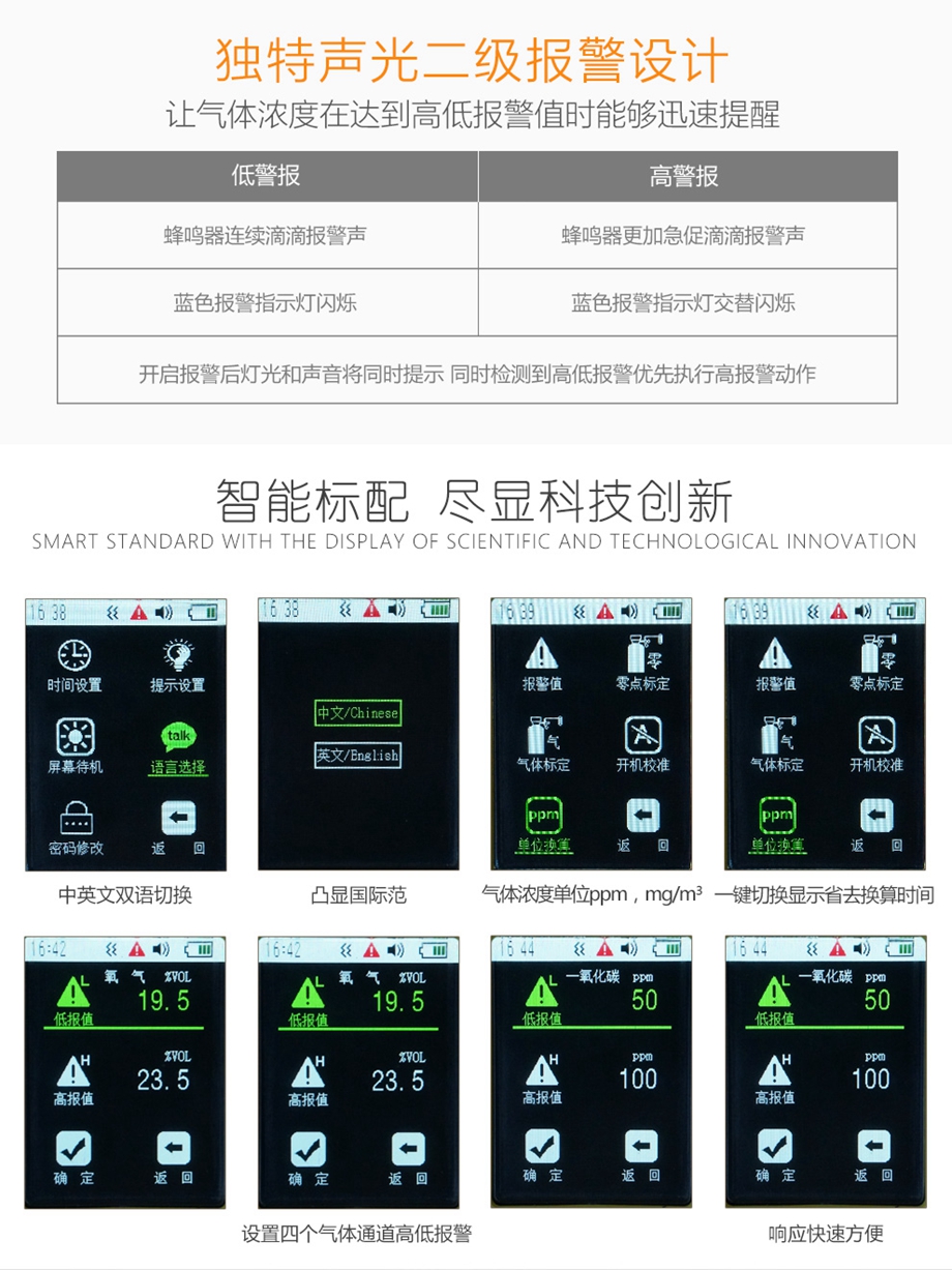 海固HG-FK4彩屏擴散式四合一氣體檢測儀