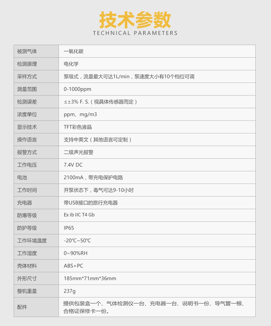 產(chǎn)品規(guī)格:CO