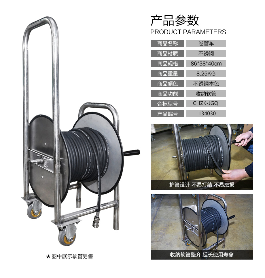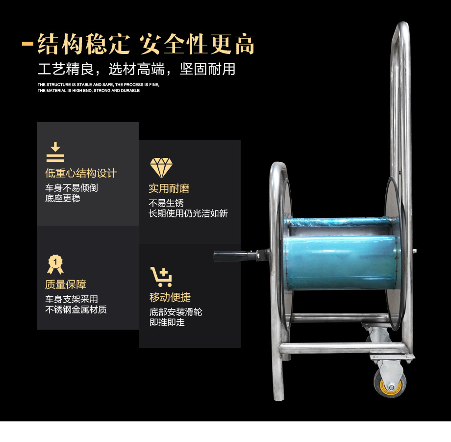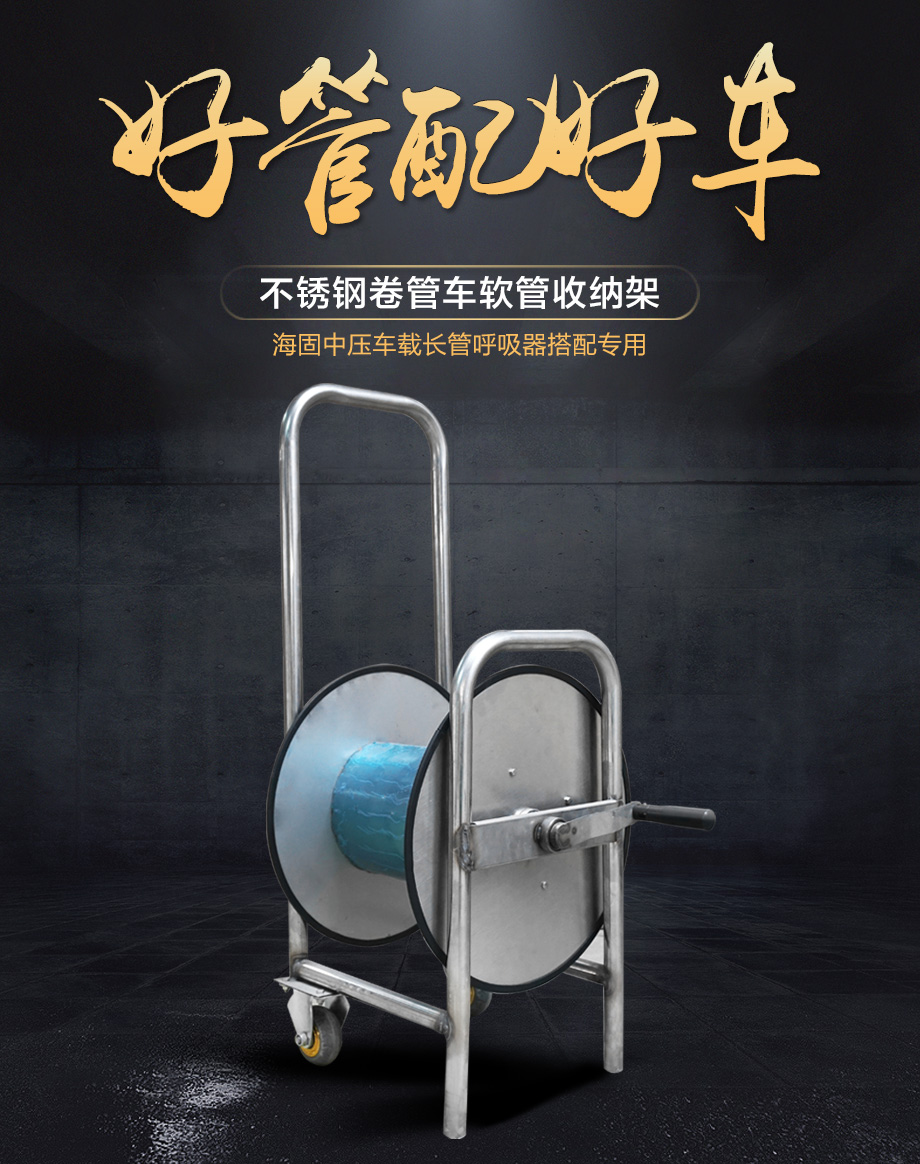 海固不銹鋼卷管車軟管收納架 中壓車載長(zhǎng)管呼吸器搭配使用
