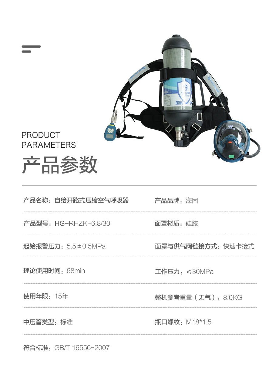 海固RHZKF6.8/30 正壓式空氣呼吸器(配備智能壓力表及壓力平視裝置)
