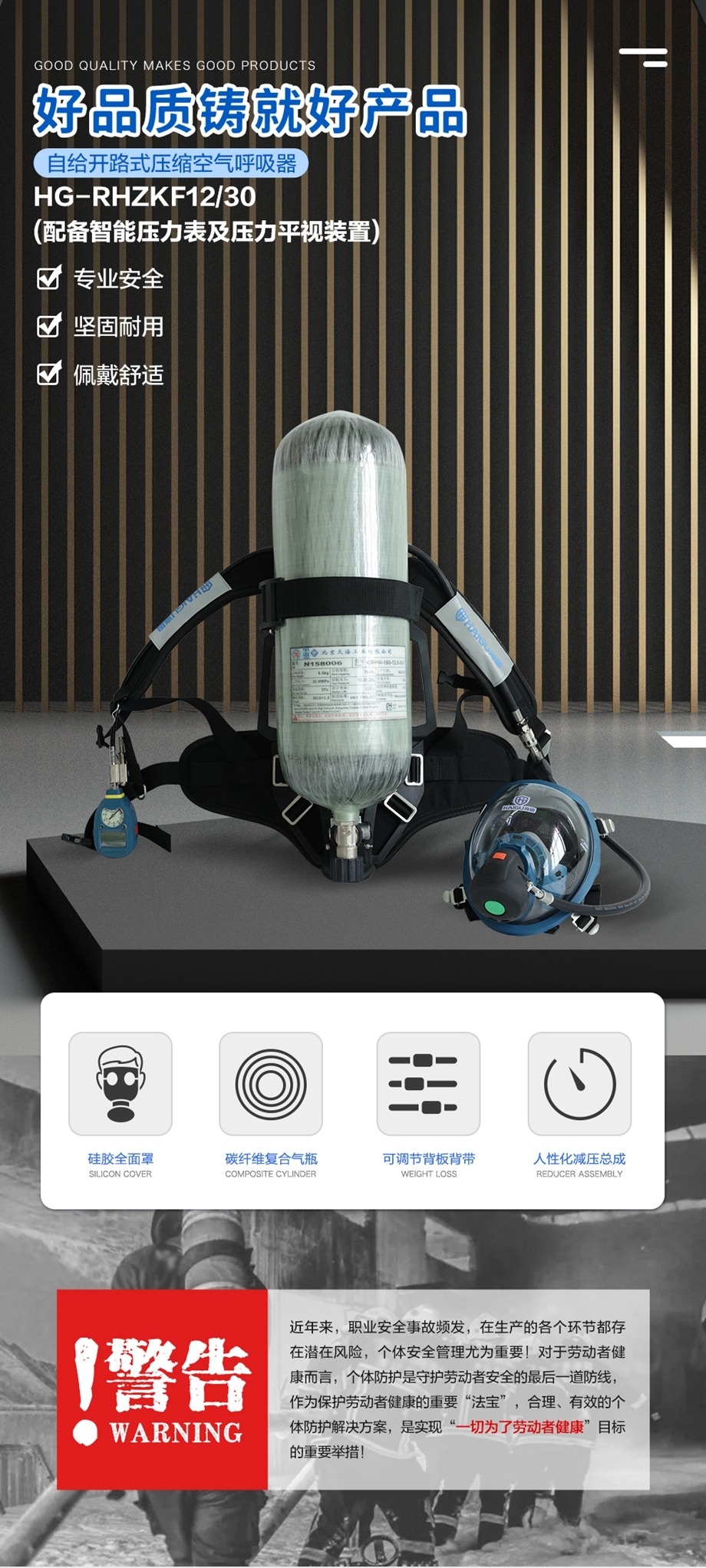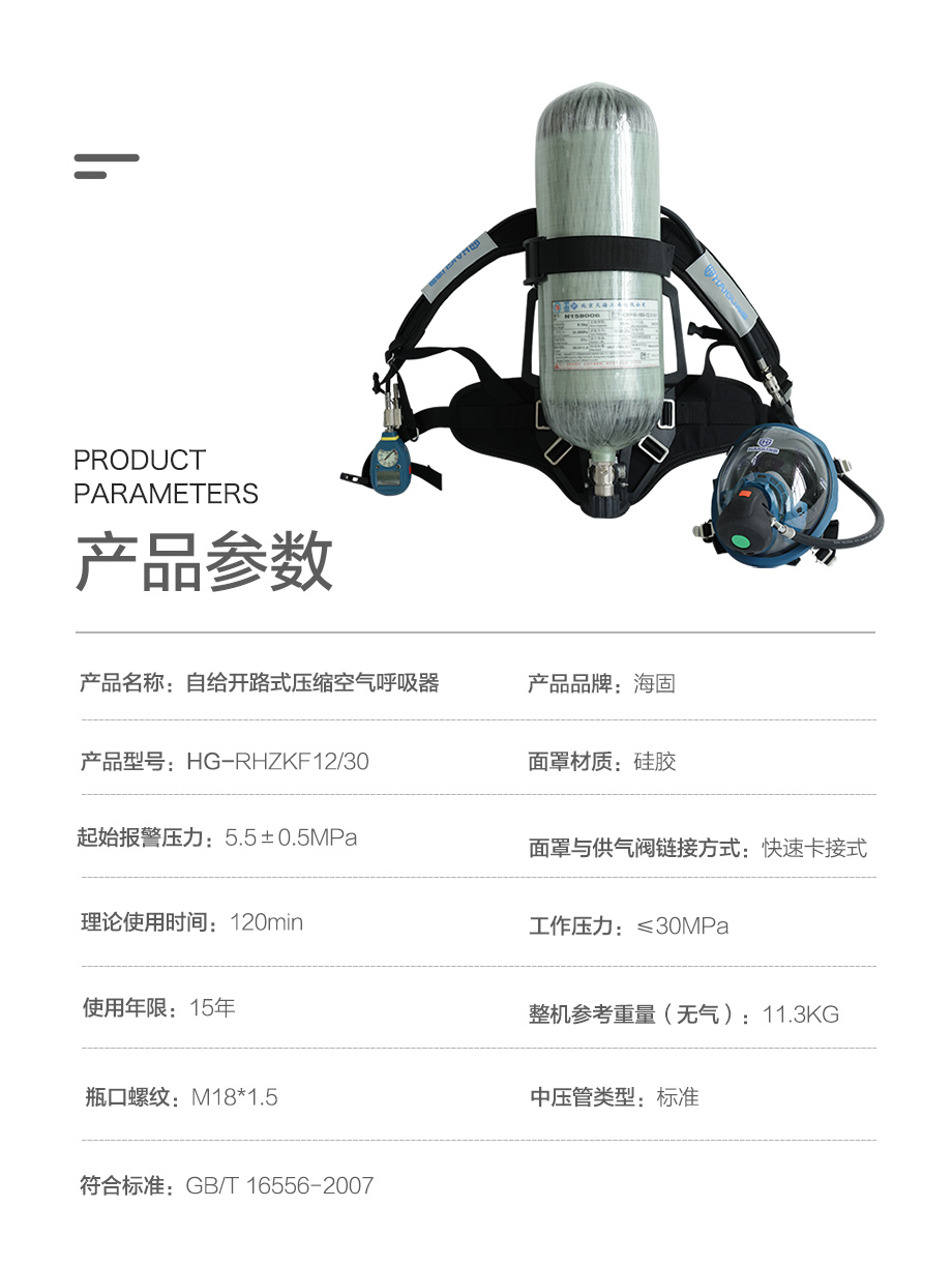 海固RHZKF12/30 正壓式空氣呼吸器(配備智能壓力表及壓力平視裝置)