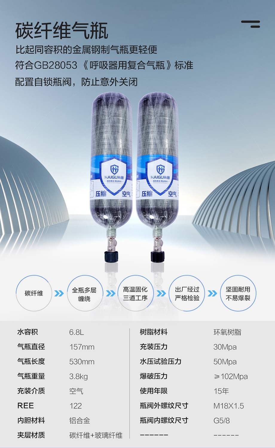 海固RHZKF6.8/30 自鎖正壓式空氣呼吸器 氣瓶帶自鎖瓶閥