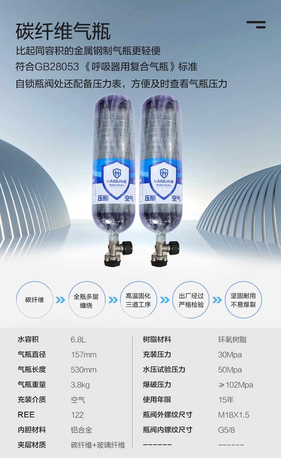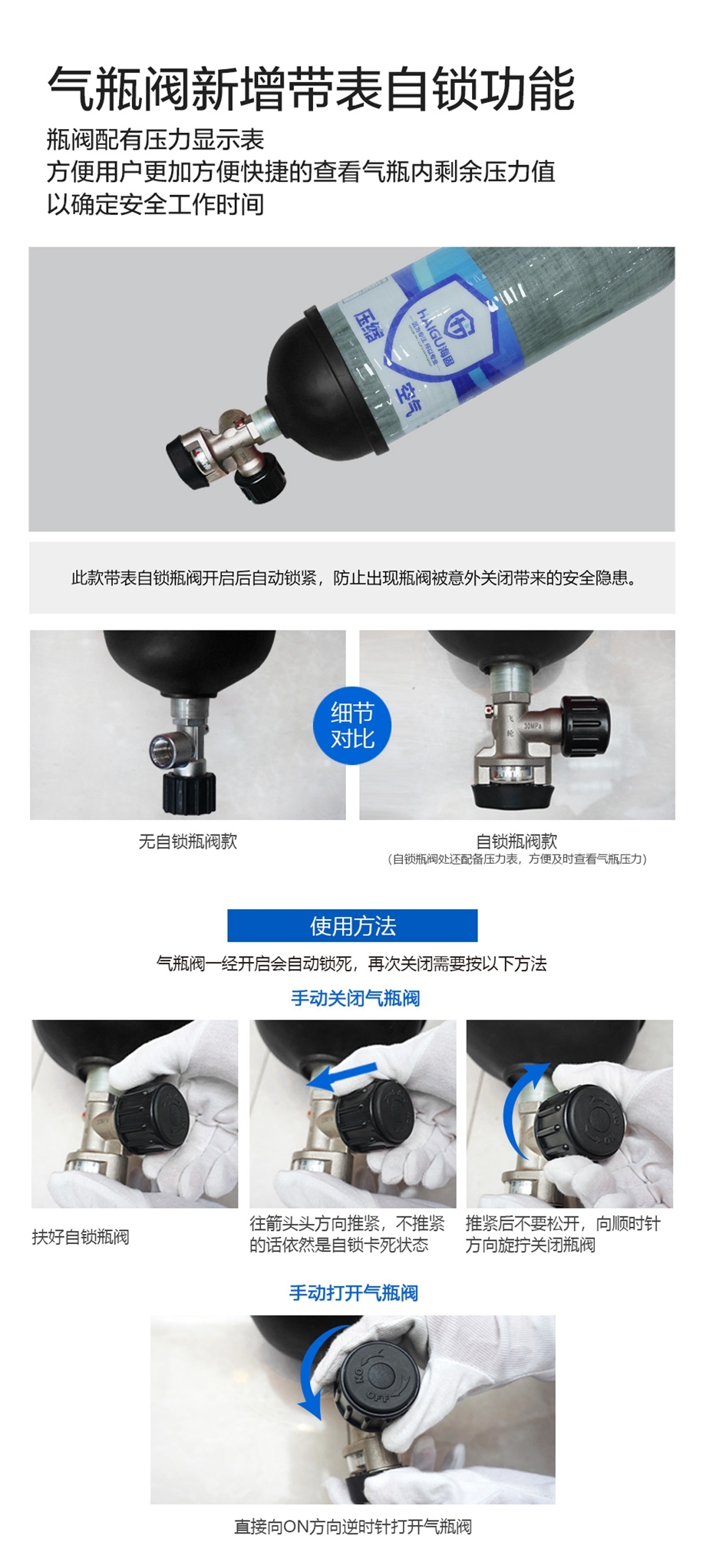 海固RHZKF6.8/30 自鎖帶表正壓式空氣呼吸器 氣瓶帶自鎖瓶閥
