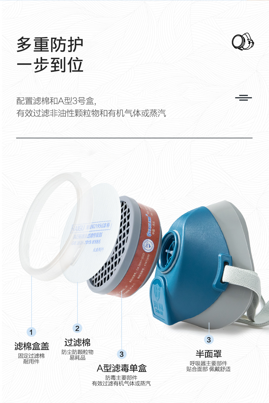 海固500防毒面具半面罩 防毒防塵套裝 搭配濾棉濾毒盒