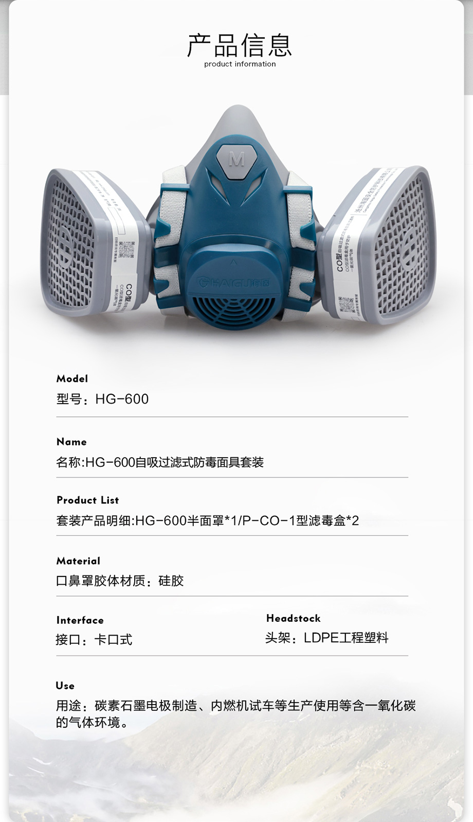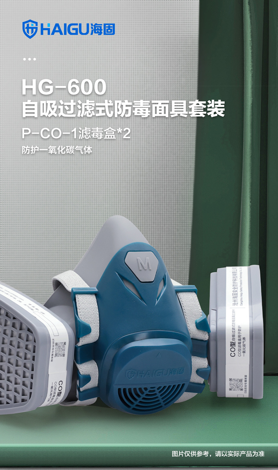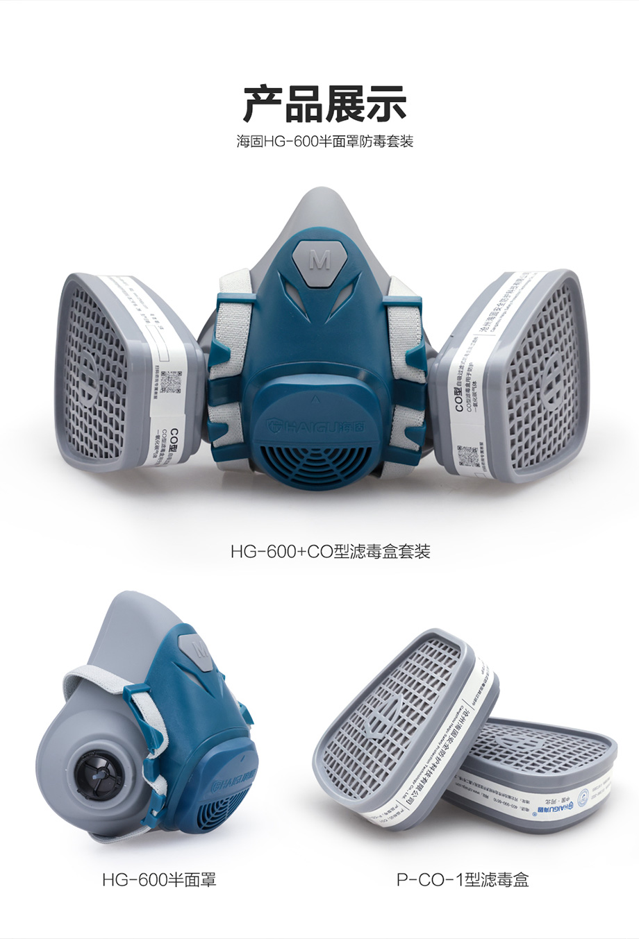 海固600半面罩+P-CO-1濾毒盒 防護(hù)一氧化碳?xì)怏w套裝