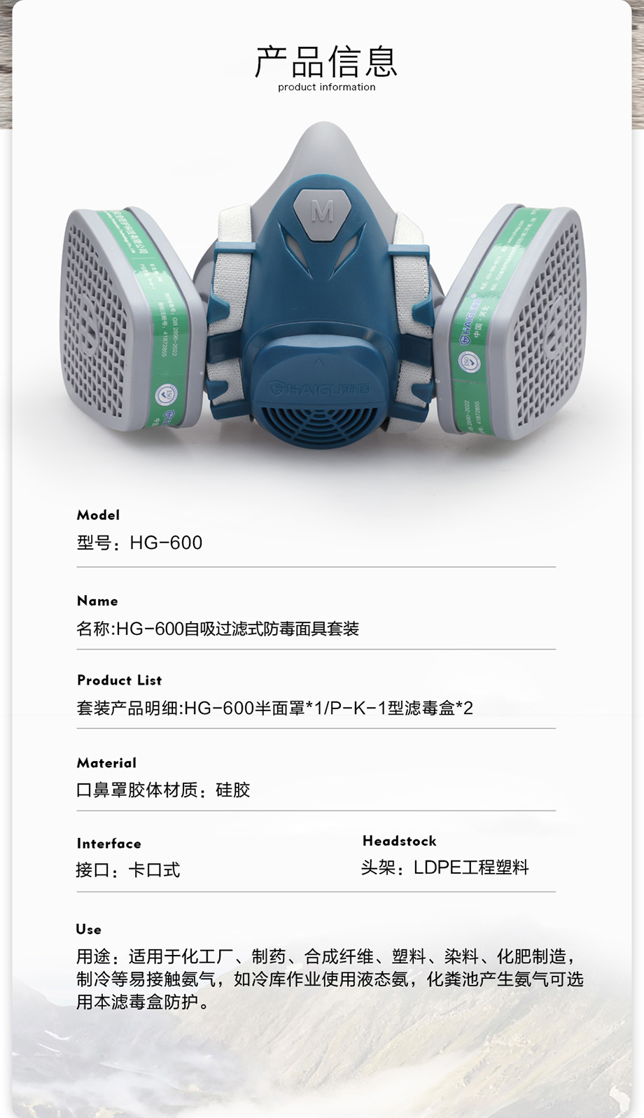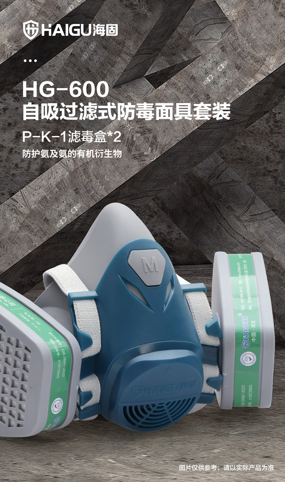海固600半面罩+P-K-1濾毒盒 防護(hù)氨及氨的有機(jī)衍生物套裝