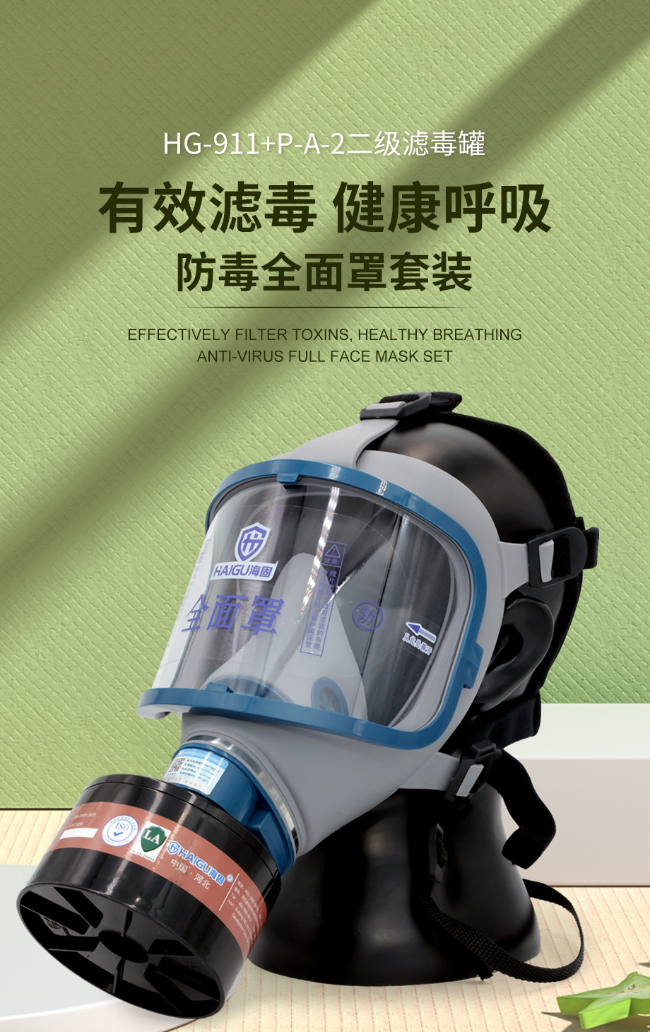 海固911全面罩+HG-ABS/P-A-2濾毒罐 活性炭防毒面具 甲醛 醇類