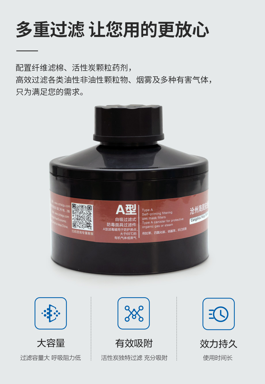產(chǎn)品規(guī)格:寶藍(lán)灰硅膠/ABS濾毒罐