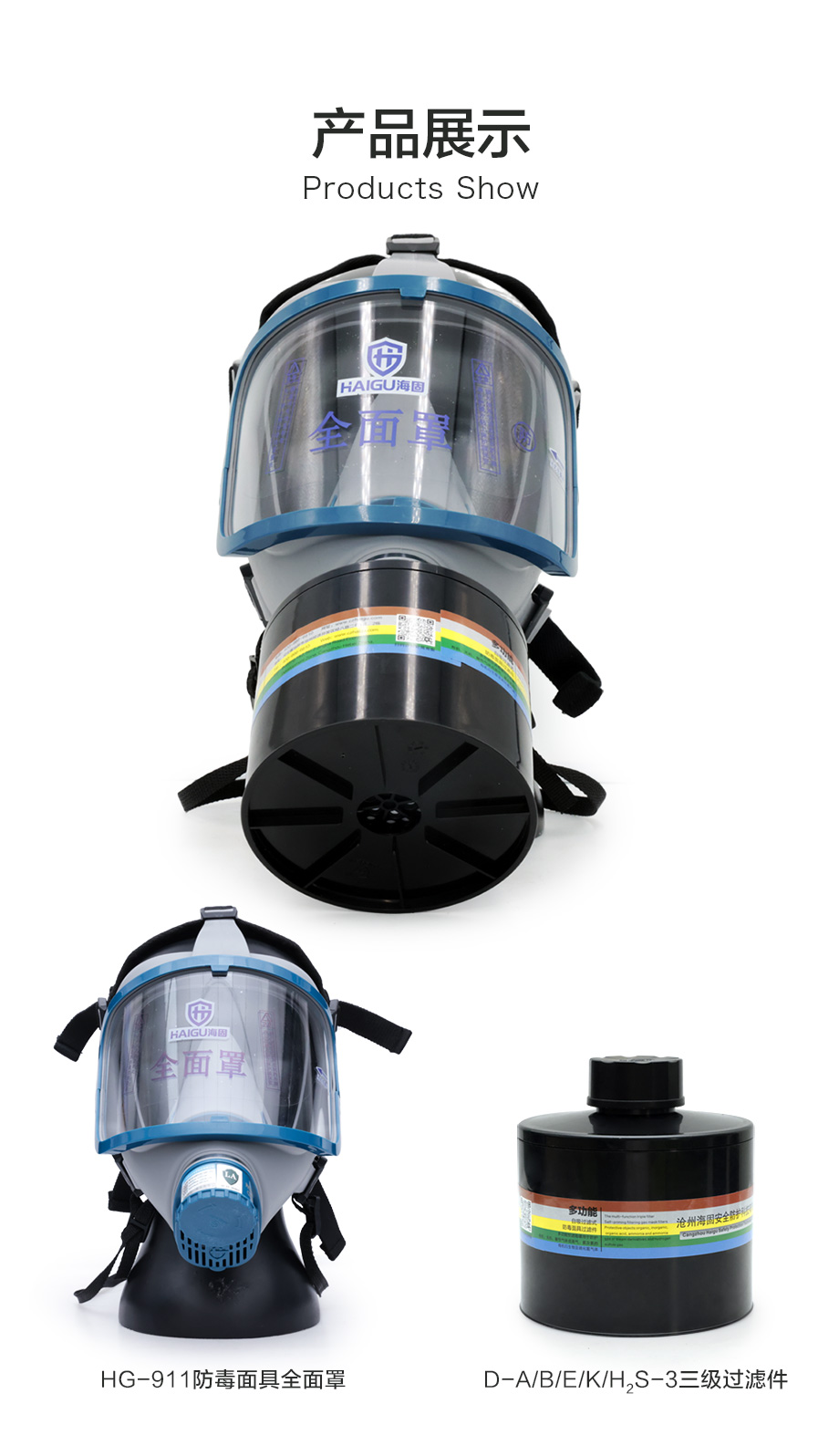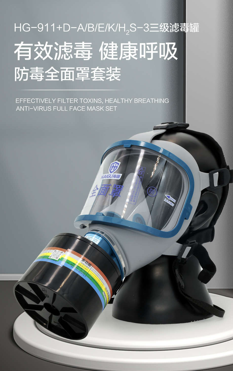 海固911全面罩+D-A/B/E/K/H2S-3濾毒罐 綜合防毒氣 活性炭面具