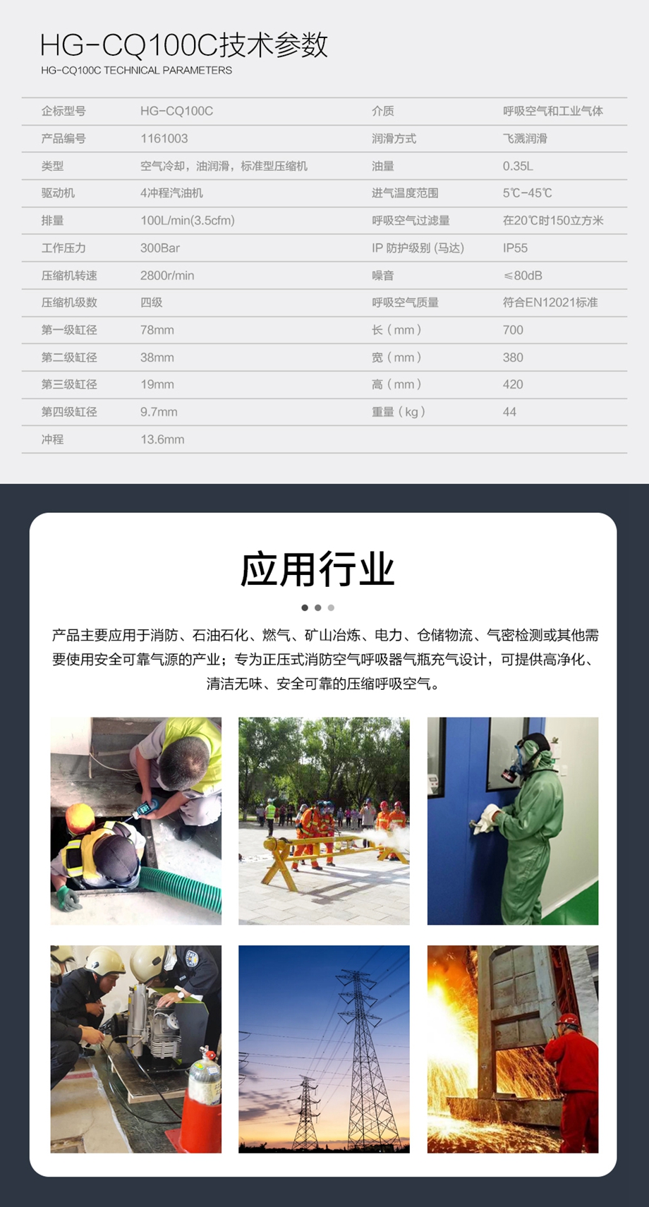 海固HG-CQ100C高壓呼吸空氣壓縮機 正壓式空氣呼吸器充氣泵