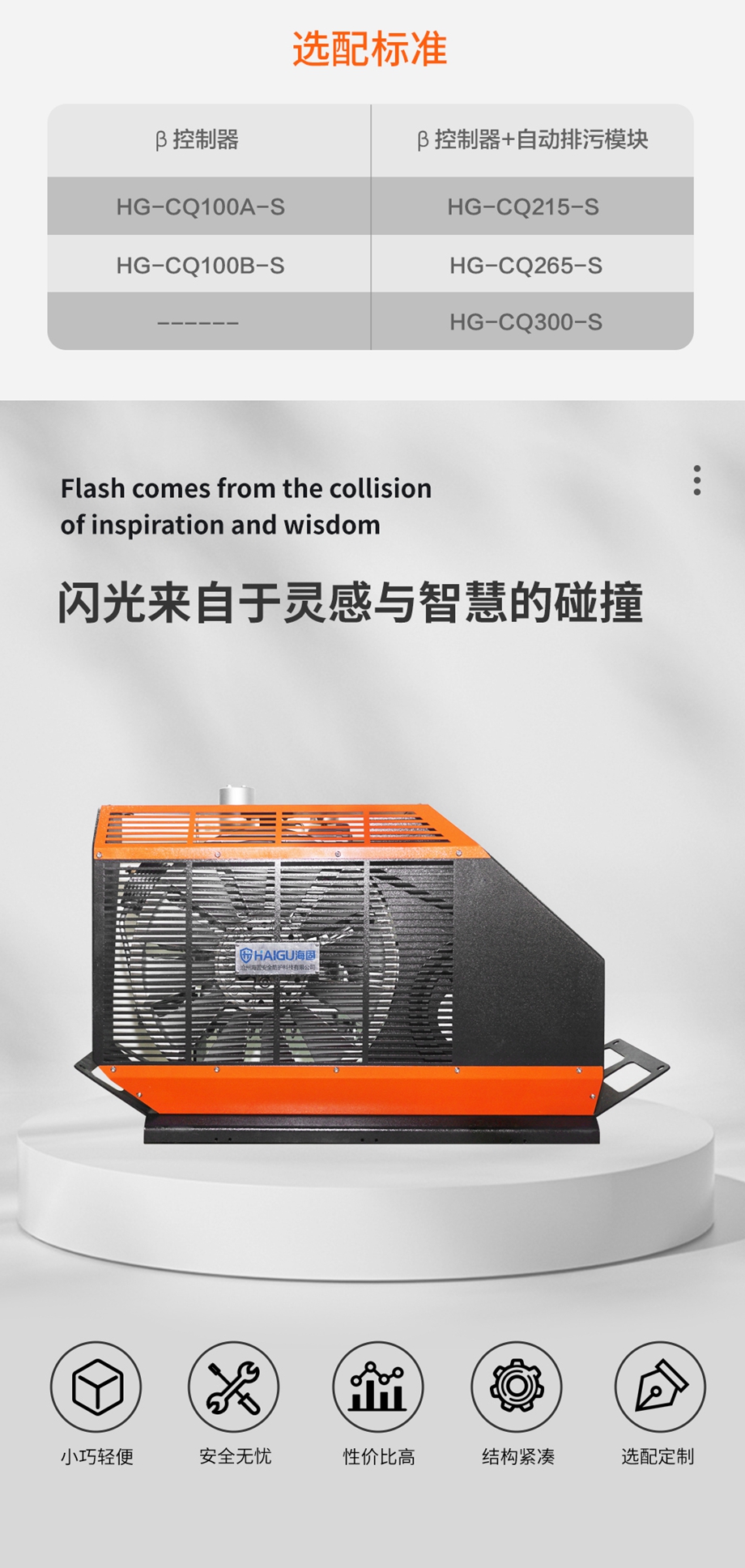 海固HG-CQ215/265/300-S高壓呼吸空氣壓縮機(jī)(定制款)新增自啟停和自動排污功能