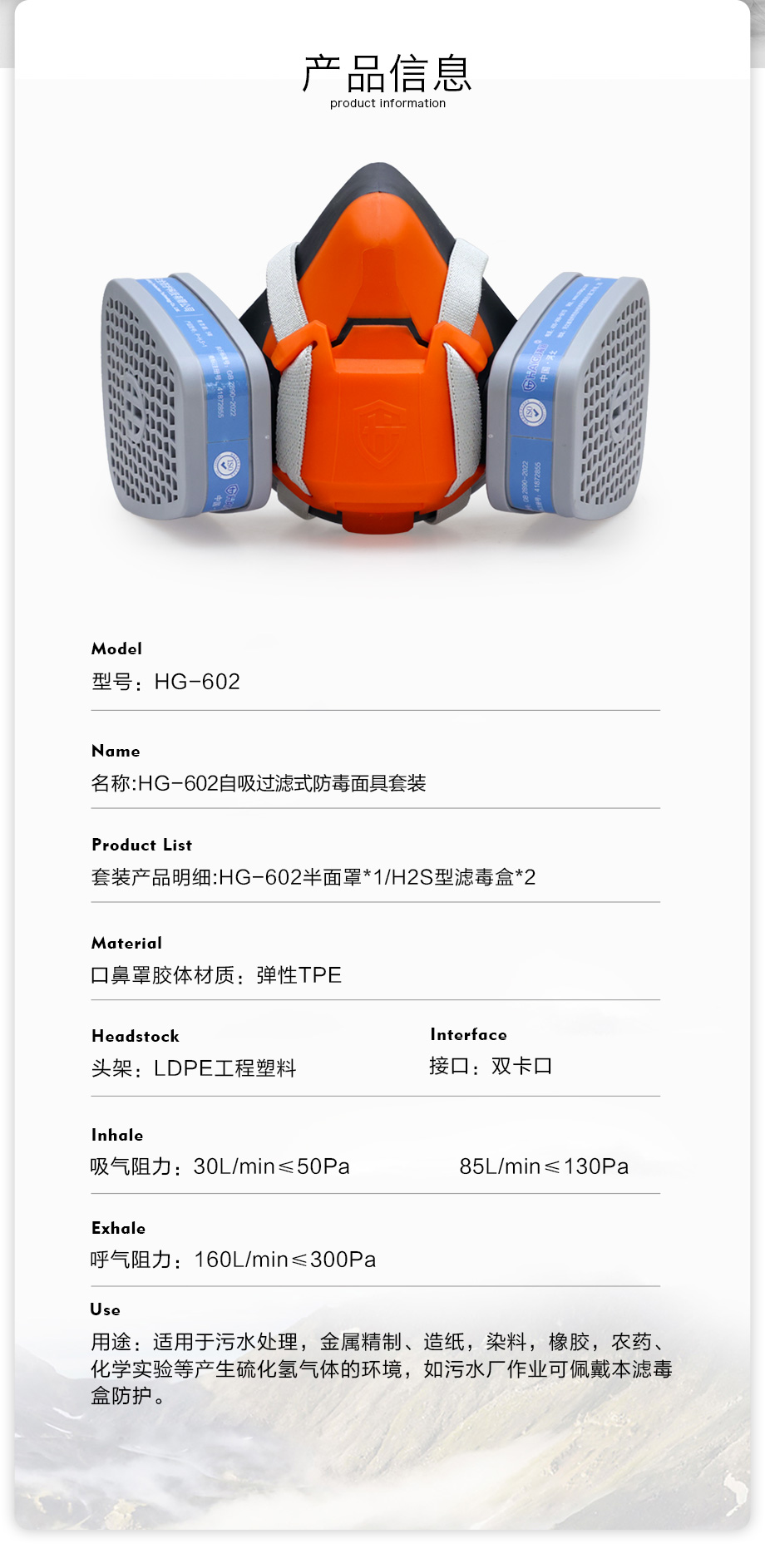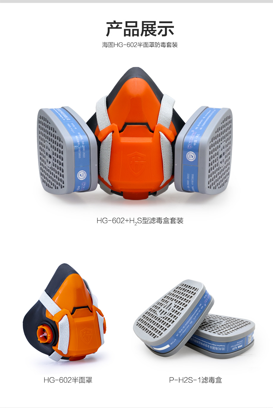海固602半面罩+P-H2S-1濾毒盒 硫化氫防護(hù)套裝
