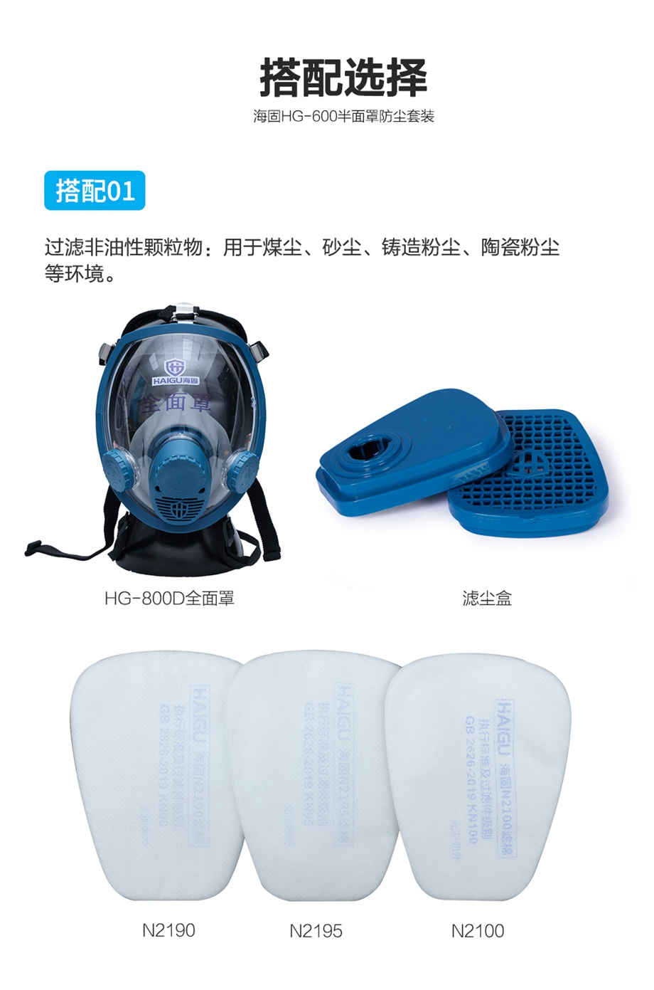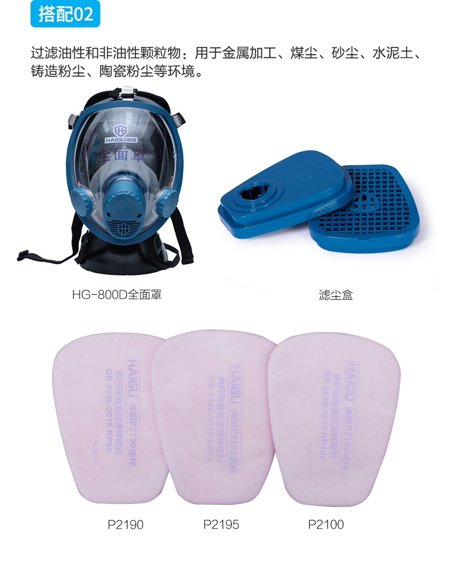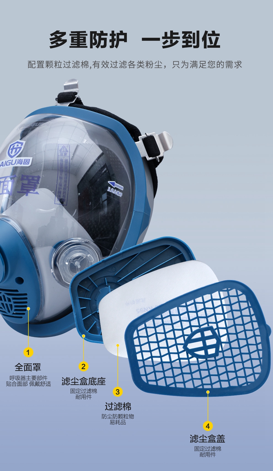 海固800D+濾塵盒+梯形濾棉 全面罩防煙塵顆粒物套裝